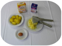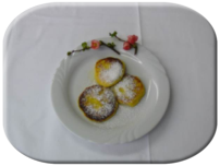 Kleine Taler formen, goldgelb braten und mit Puderzucker bestäuben!